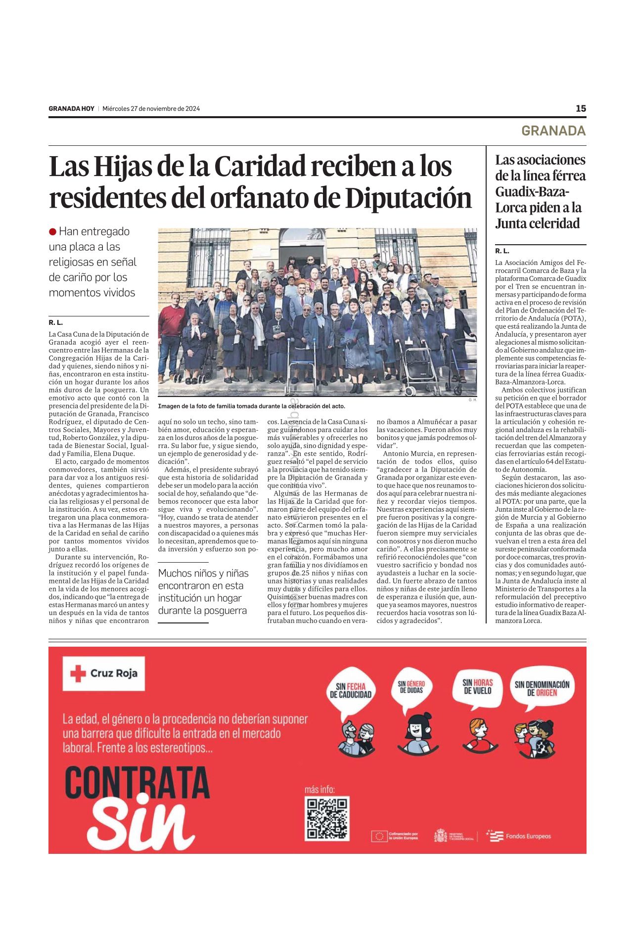 En este sencillo acto queremos expresar nuestra gratitud a la Diputación de Granada por este encuentro tan sencillo como conmovedor, que revive recuerdos imborrables y nos inspira a seguir sembrando caridad con renovada energía y audacia, tal como lo vivieron nuestros fundadores, San Vicente de Paul y Santa Luisa de Marillac.