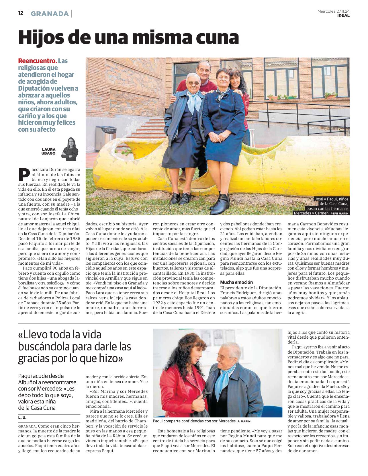 La Casa Cuna de la Diputación de Granada ha acogido este martes el reencuentro entre las Hermanas de la Congregación Hijas de la Caridad y quienes, siendo niños y niñas, encontraron en esta institución un hogar durante los años más duros de la posguerra.
